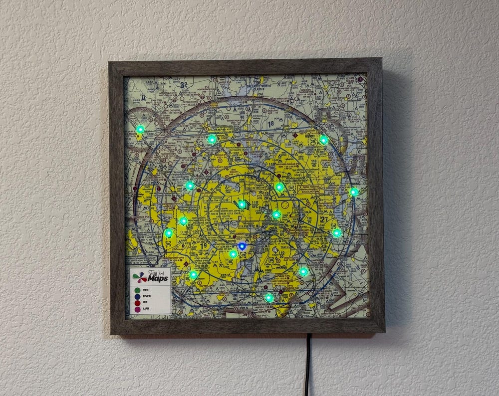 42x42 Metal Framed Texas Real-Time Aviation Weather Map - Tailwind Maps